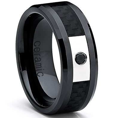 Black diamond ceramic wedding rings
